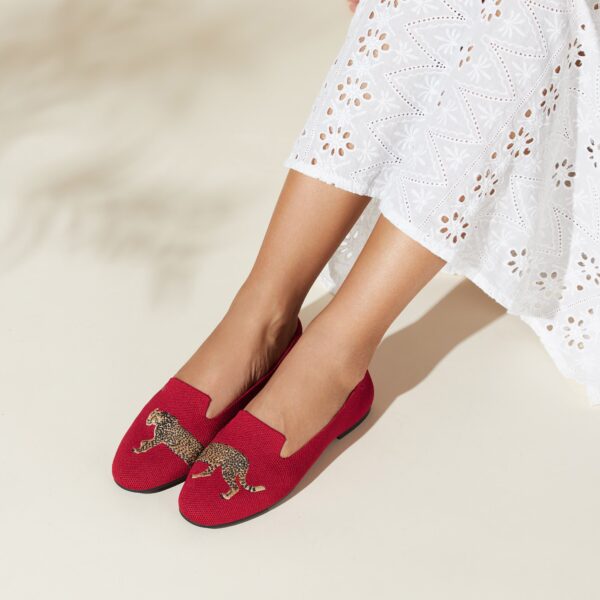 AUDREY 刺繡樂福鞋 女鞋(寶石紅豹紋)