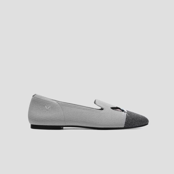 AUDREY 刺繡樂福鞋 女鞋(牡蠣灰奶牛貓)