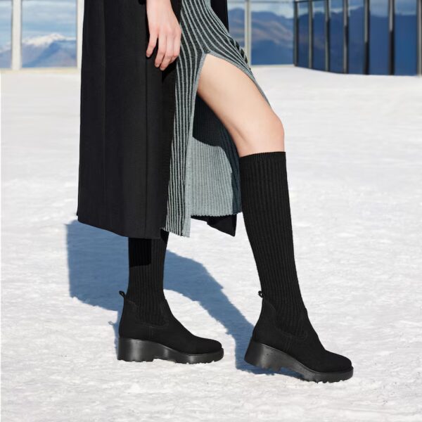 選擇選項 此產品有多種款式。 可在產品頁面選擇選項EDUARDA 圓頭及膝厚底羊毛坡跟靴 (黑色)