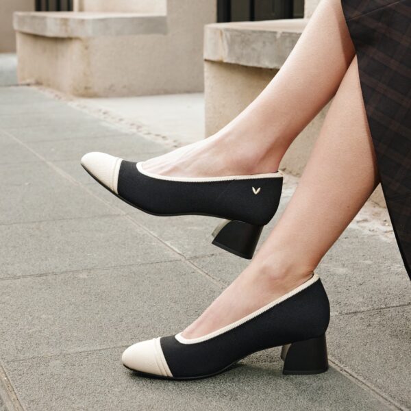 ANNA 尖頭中跟鞋 奶油象牙色/黑色(女鞋/中跟鞋/貓跟鞋)