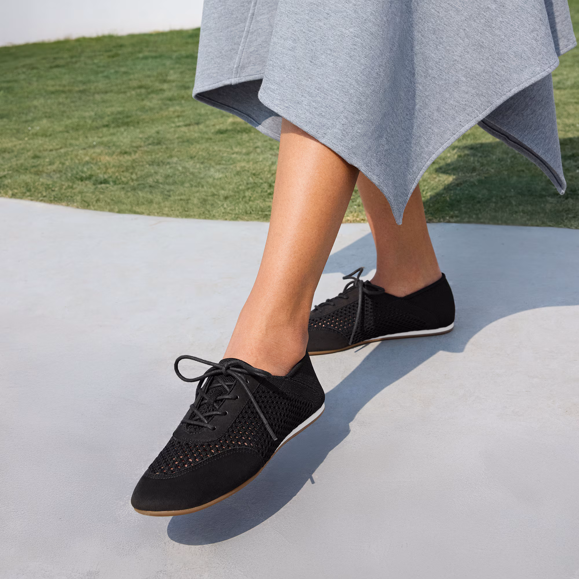 Yara 圓頭綁帶網布休閒鞋,以輕盈透氣面料打造全天候舒適。柔軟仿羊毛內裡帶來奢華觸感,經典細鞋帶與俐落線條增添女性柔美氣息。寬敞鞋頭設計特別友善寬腳型,可折疊後跟讓您隨心切換正式綁帶或懶人鞋兩種穿法。抓地力強的橡膠+EVA 大底,無論日常逛街或輕旅行都穩健自在。環保工藝與優雅風格一次滿足,是您衣櫥裡最百搭的輕量神器!