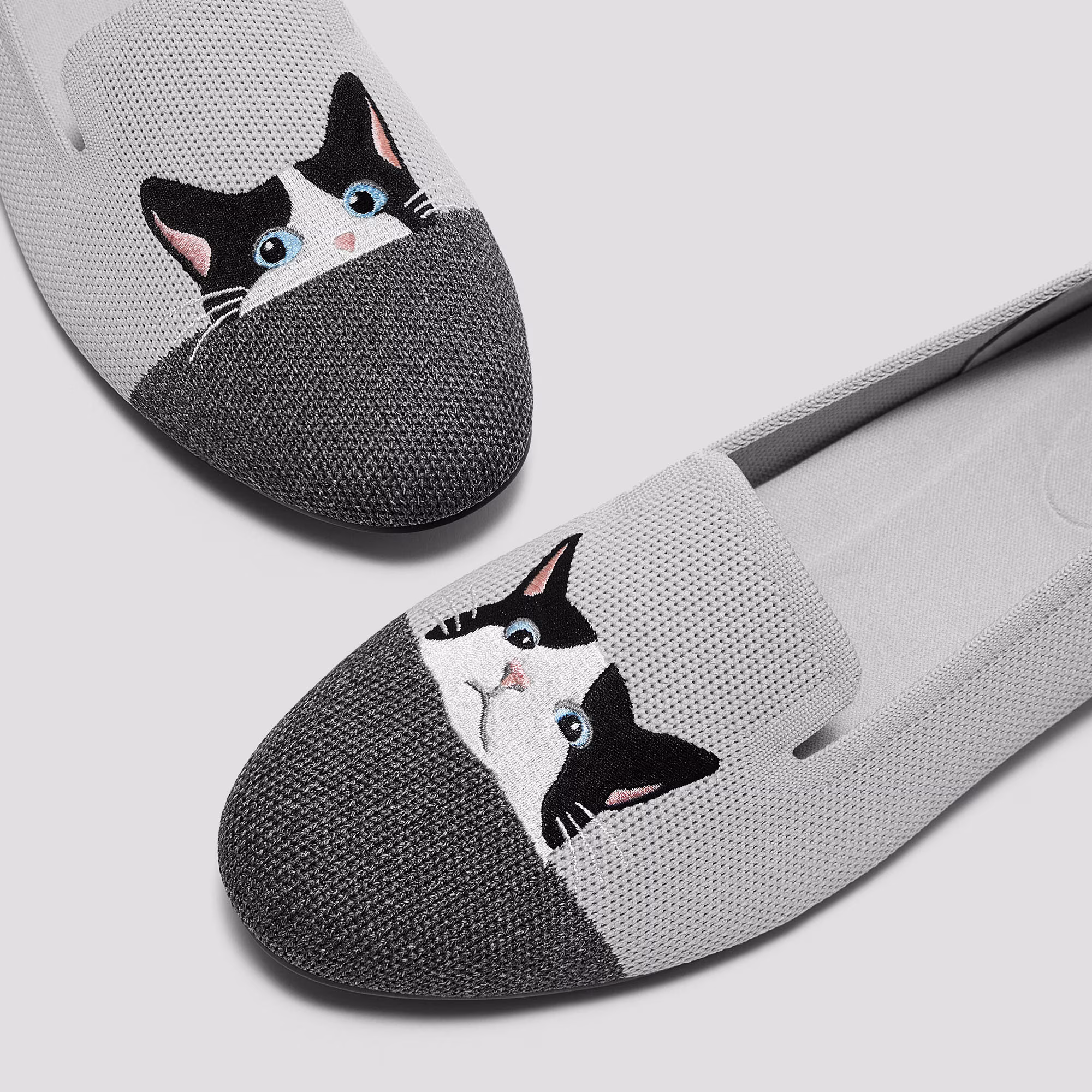 AUDREY 刺繡樂福鞋 女鞋(牡蠣灰奶牛貓)